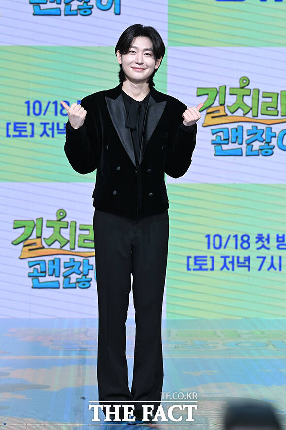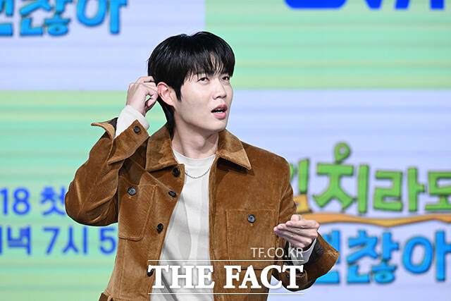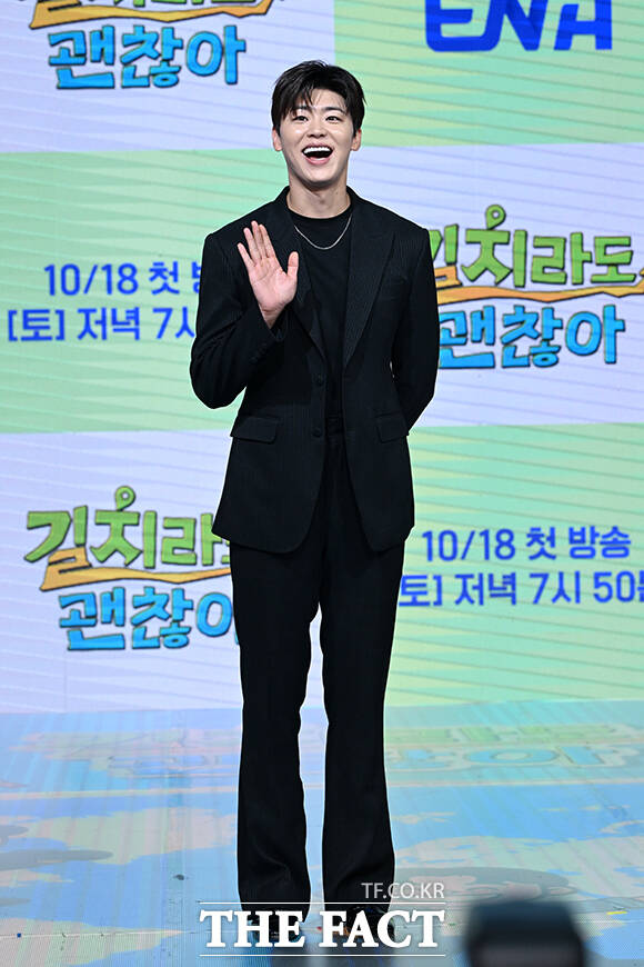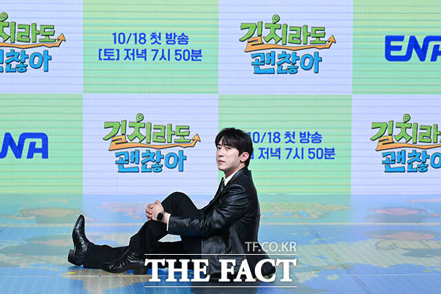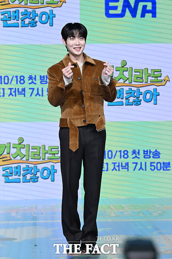 [더팩트ㅣ서예원 기자] 가수 손태진과 김용빈, 박지현, 개그맨 김원훈, 모델 송해나(왼쪽부터)가 16일 오전 서울 마포구 상암DMC푸르지오 S-city 쇼킹케이팝센터에서 열린 ENA 새 예능 '길치라도 괜찮아' 제작발표회에 참석해 포즈를 취하고 있다.