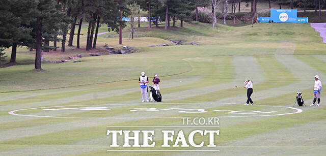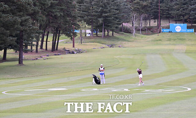 [더팩트ㅣ양주=이새롬 기자] KLPGA(한국여자프로골프)투어 '상상인 · 한경 와우넷 오픈 2025' 1라운드 경기가 16일 경기 양주 레이크우드CC에서에서 열린 가운데, 15번 홀 상상인존에서 선수들이 티샷하고 있다.