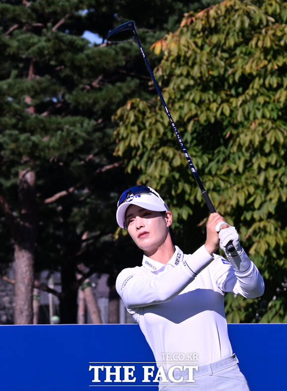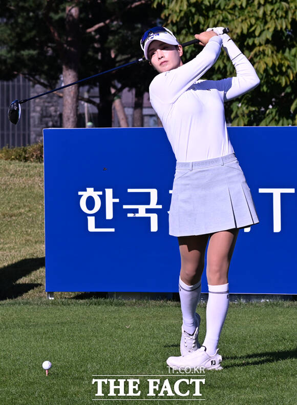 [더팩트ㅣ양주=이새롬 기자] 박결이 16일 경기 양주 레이크우드CC에서 열린 KLPGA(한국여자프로골프)투어 '상상인·한경 와우넷 오픈 2025' 1라운드 경기에 참가해 10번홀 티샷을 하고 있다.