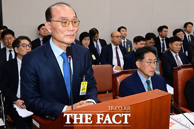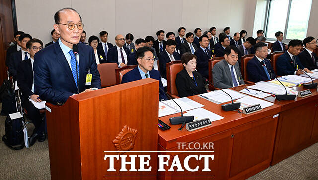 [더팩트ㅣ국회=남윤호 기자] 박원동 대한무역투자진흥공사(코트라) 상임감사가 16일 오전 서울 여의도 국회에서 열린 산업통상자원중소벤처기업위원회의 대한무역투자진흥공사 등에 대한 국정감사에 출석해 질의 답변을 하고 있다.