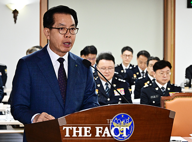 [더팩트ㅣ배정한 기자] 김희중 한국도로교통공단 이사장이 17일 오전 서울 서대문구 경찰청에서 열린 행정안전위원회 국정감사에 출석해 인사말을 하고 있다.hany@tf.co.kr사진영상기획부 photo@tf.co.kr
