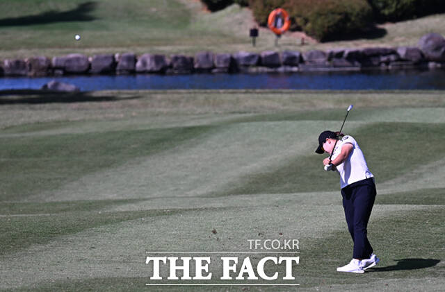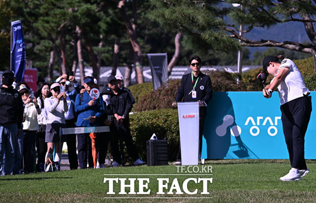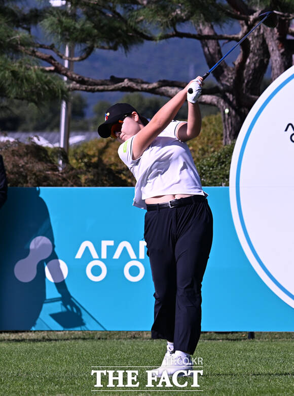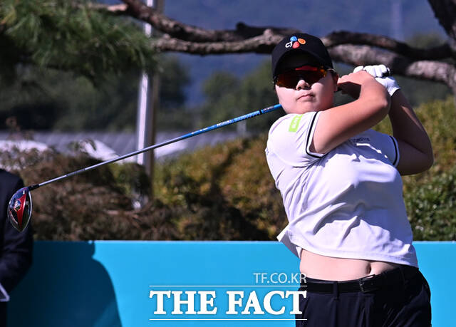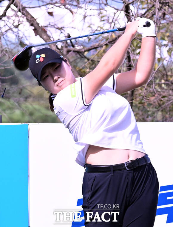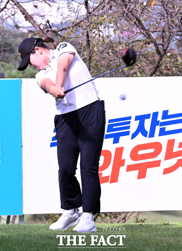 [더팩트ㅣ양주=이새롬 기자] 홍정민이 17일 경기 양주 레이크우드CC에서 열린 KLPGA(한국여자프로골프)투어 '상상인·한경 와우넷 오픈 2025' 2라운드 경기에 참가해 1번홀 티샷을 하고 있다.