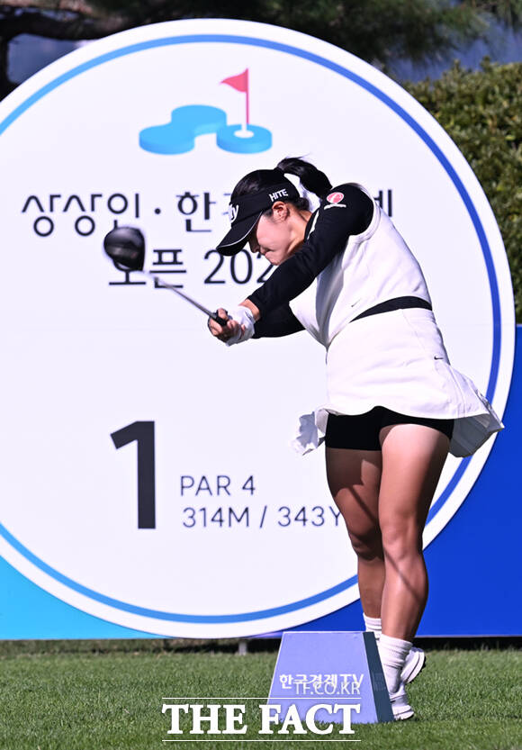 [더팩트ㅣ양주=이새롬 기자] 김민별이 17일 경기 양주 레이크우드CC에서 열린 KLPGA(한국여자프로골프)투어 '상상인·한경 와우넷 오픈 2025' 2라운드 경기에 참가해 1번홀에서 티샷을 하고 있다.