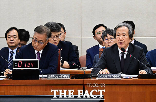 국감 출석해 질의에 답변하는 정기석 국민건강보험공단 이사장 [TF사진관]