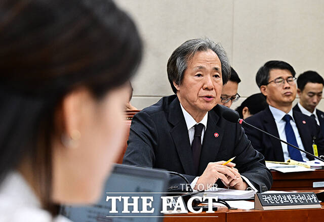 정기석 국민건강보험공단 이사장이 17일 오후 서울 여의도 국회 보건복지위원회에서 열린 건강보험공단과 건강보험심사평가원에 대한 국정감사에 출석해 질의에 답변을 하고 있다. /국회=배정한 기자