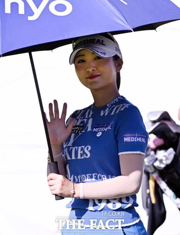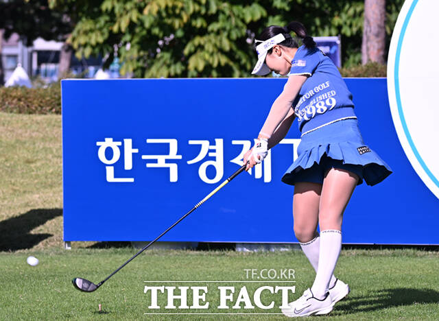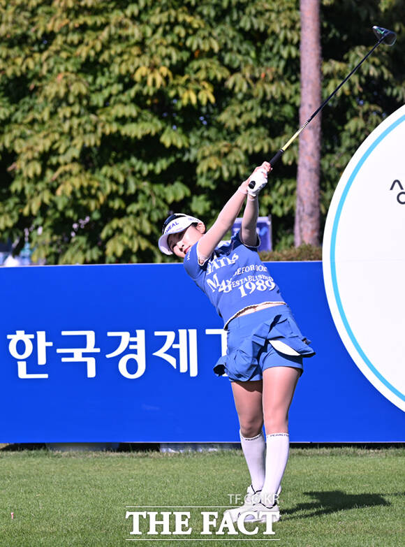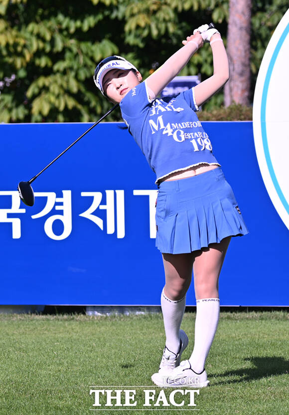 [더팩트ㅣ양주=이새롬 기자] 이예원이 17일 경기 양주 레이크우드CC에서 열린 KLPGA(한국여자프로골프)투어 '상상인·한경 와우넷 오픈 2025' 2라운드 경기에 참가해 10번홀에서 티샷을 하고 있다.