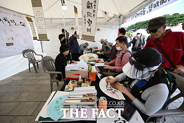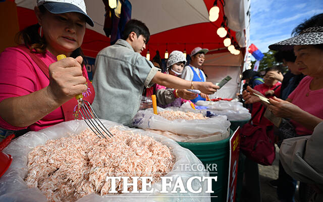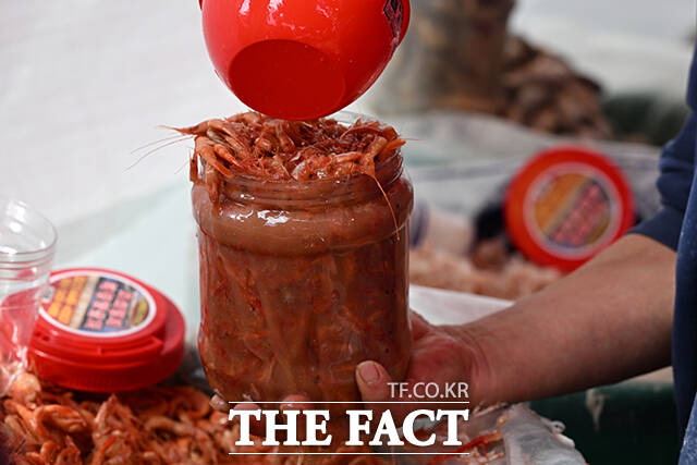 [더팩트ㅣ서예원 기자] 제18회 마포나루 새우젓축제가 17일 오후 서울 마포구 월드컵공원 평화광장 일대에서 열린 가운데 상인이 새우젓을 담고 있다.