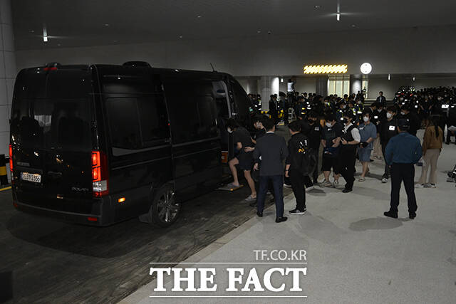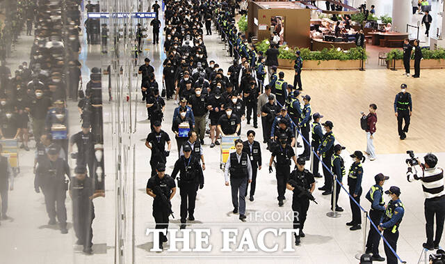 인천공항에 도착한 64명은 입국 절차를 마친 후 호송차 23대를 이용해 관할 경찰서로 분산·압송됐다.