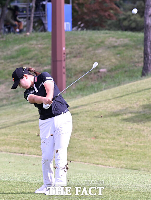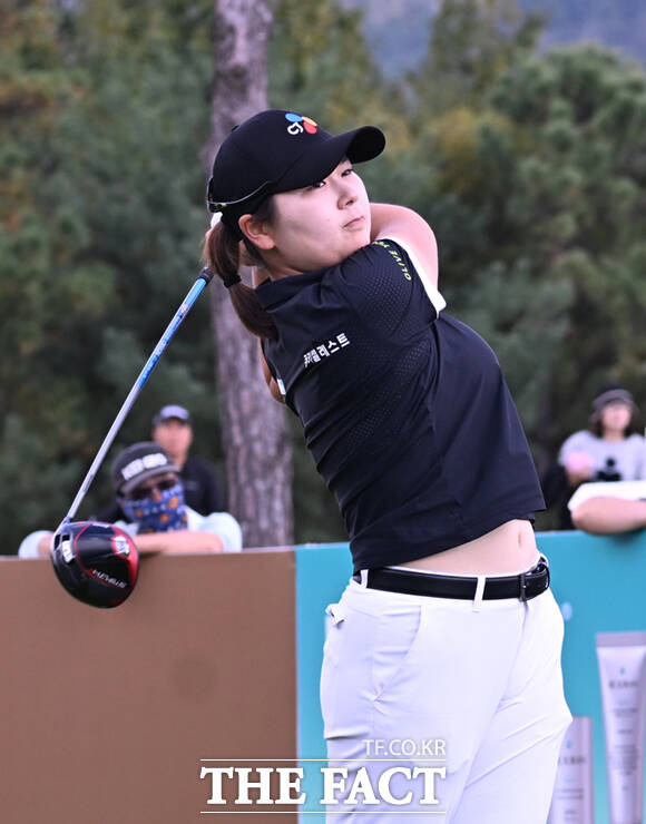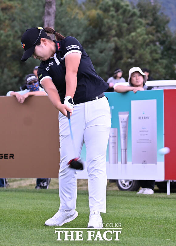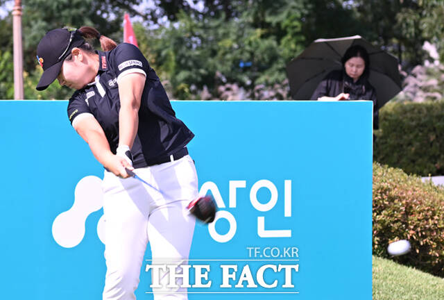 [더팩트ㅣ양주=이새롬 기자] 홍정민이 19일 경기 양주 레이크우드CC에서 열린 KLPGA(한국여자프로골프)투어 '상상인·한경 와우넷 오픈 2025' 최종라운드 경기에 참가해 10번홀에서 티샷을 하고 있다.