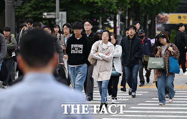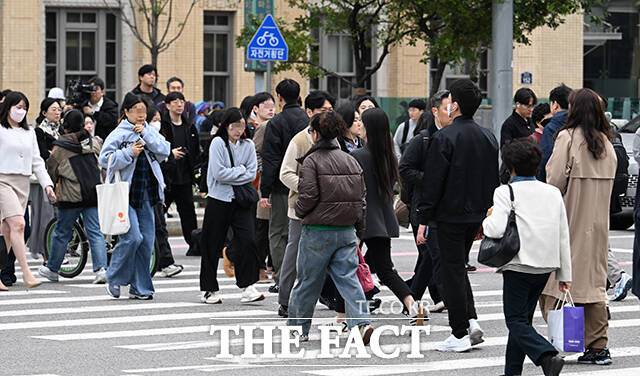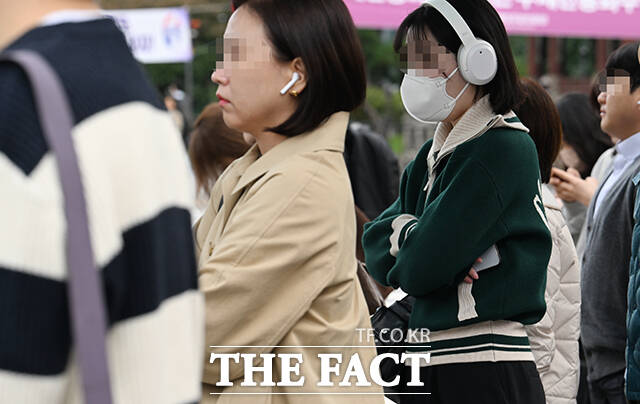 [더팩트ㅣ박헌우 기자] 전국 대부분 지역의 아침 기온이 떨어진 20일 오전 서울 종로구 세종대로사거리 일대에서 직장인들이 몸을 움츠린 채 출근길에 나서고 있다.