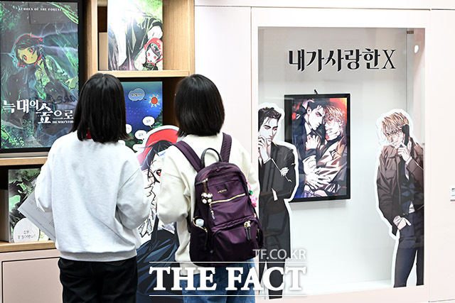 2025 월드 웹툰 페스티벌이 20일 오후 서울 송파구 롯데월드 아이스링크에서 열린 가운데 관람객들이 전시를 관람하고 있다. /남용희 기자