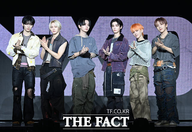 [더팩트ㅣ이새롬 기자] 그룹 보이넥스트도어 태산, 성호, 명재현, 이한, 리우, 운학(왼쪽부터)이 20일 오후 서울 강서구 KBS 아레나에서 열린 미니 5집 '디 액션(The Action)' 미디어 쇼케이스에 참석해 포즈를 취하고 있다.