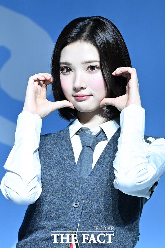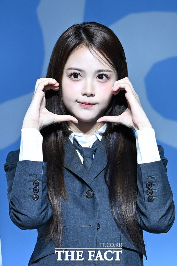 [더팩트ㅣ서예원 기자] 그룹 하츠투하츠의 예온과 스텔라, 유하, 이안, 에이나, 주은, 카르멘, 지우가 20일 오후 서울 용산구 블루스퀘어 SOL 트래블홀에서 열린 첫 미니앨범 'FOCUS' 발매 기념 미디어 쇼케이스에 참석해 포즈를 취하고 있다.