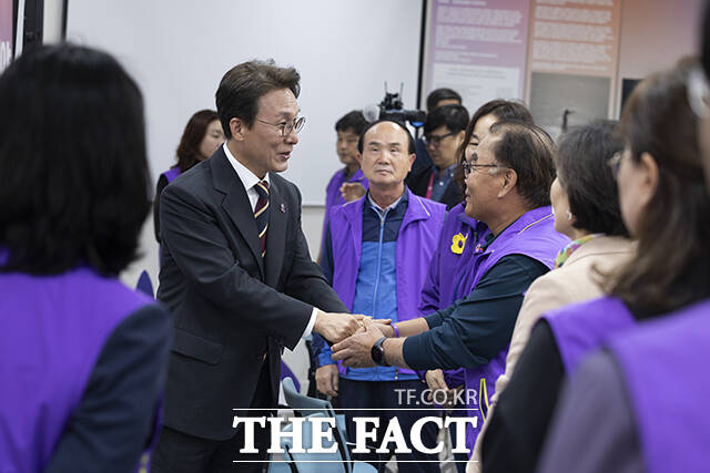 [더팩트ㅣ임영무 기자] 김민석 국무총리(왼쪽)가 20일 오후 이태원 참사 3주기를 앞두고 서울 종로구 적선현대빌딩에 있는 '별들의 집'을 방문해 10·29 이태원 참사 유가족협의회 회원들과 악수를 나누고 있다. <사진=청사사진기자단>darkroom@tf.co.kr사진영상기획부 photo@tf.co.kr