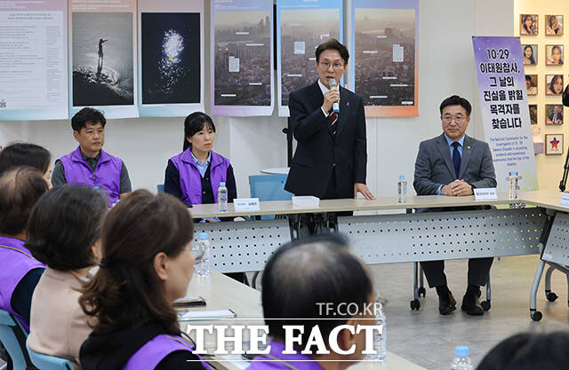 [더팩트ㅣ임영무 기자] 김민석 국무총리가 이태원 참사 3주기를 앞둔 20일 오후 서울 종로구 적선현대빌딩에 마련된 ‘별들의 집’을 방문해 인사말을 하고 있다.
