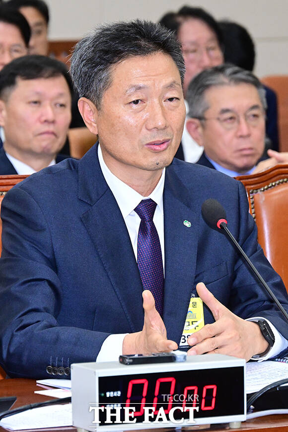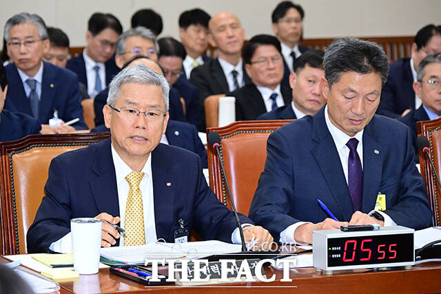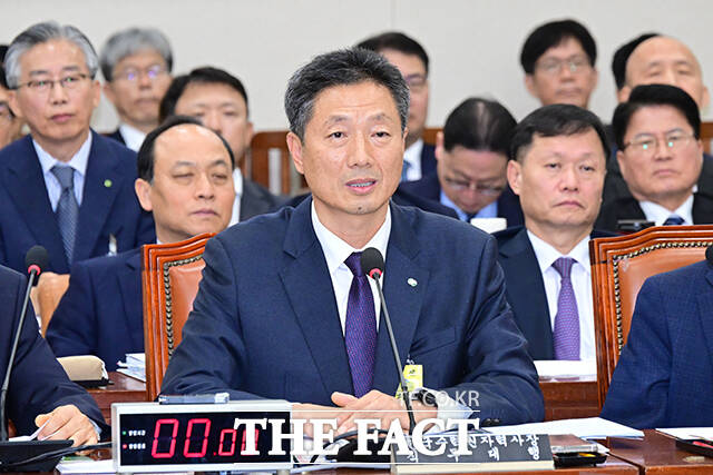 [더팩트ㅣ국회=남윤호 기자] 전대욱 한국수력원자력 사장 직무대행이 23일 서울 여의도 국회에서 열린 기후에너지환경노동위원회의 한국에너지공단 등에 대한 국정감사에 출석해 물을 마시고 있다.