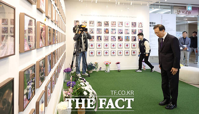 [더팩트ㅣ임영무 기자] 이석연 국민통합위원장이 24일 오전 서울 종로구 10.29 이태원참사 기억소통공간인 '별들의집'을 방문해 묵념을 하고 있다.
