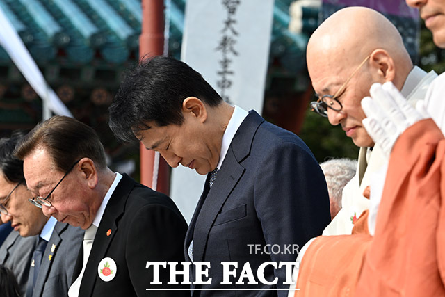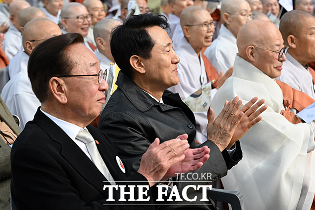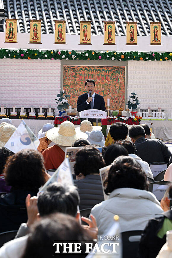 [더팩트ㅣ남용희 기자] 오세훈 서울시장이 25일 오전 서울 은평구 진관사에서 열린 국행수륙재에 참석해 축사를 하고 있다.