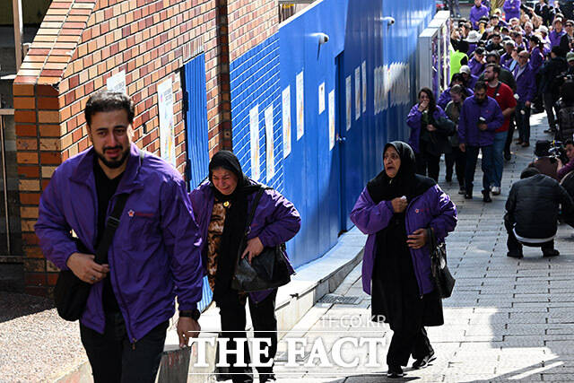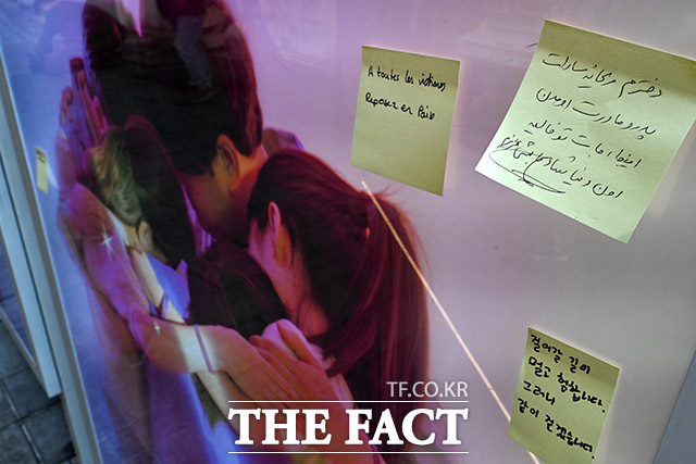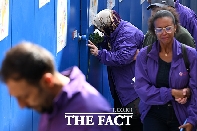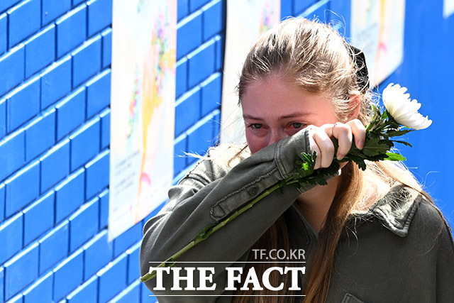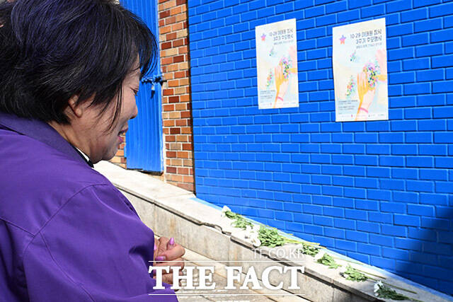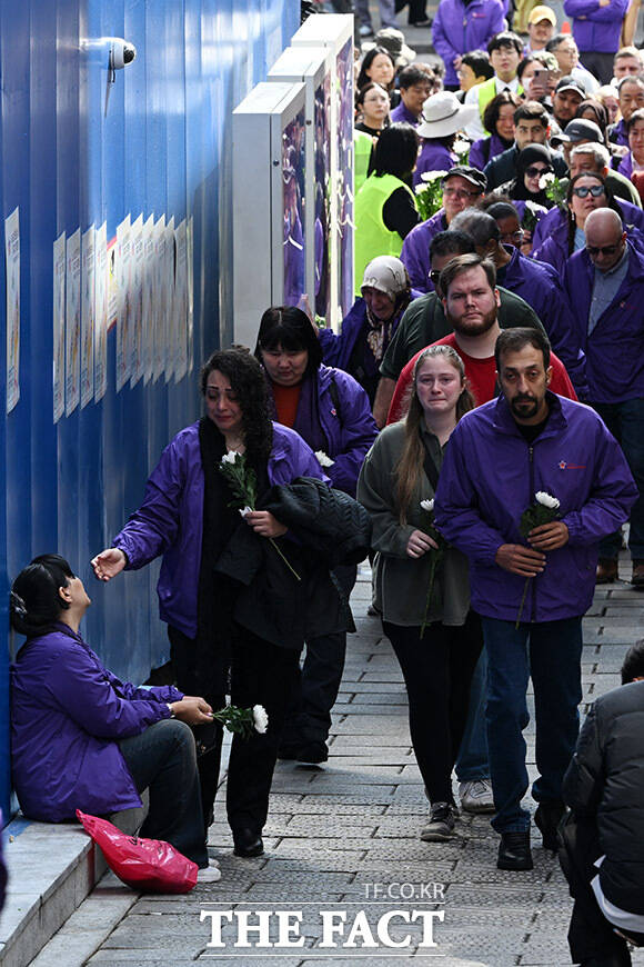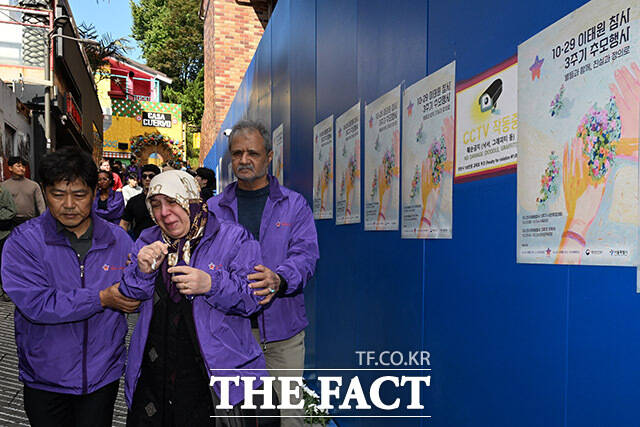 [더팩트ㅣ남용희 기자] 10.29 이태원 참사 외국인 희생자 유가족들이 25일 오후 서울 용산구 이태원역 앞 '10.29 기억과 안전의 길'을 찾아 참사 현장을 살펴보며 눈물을 흘리고 있다.