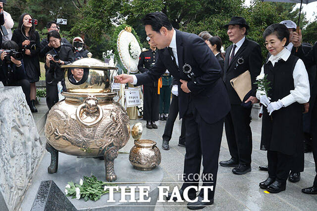 [더팩트ㅣ남용희 기자] 장동혁 국민의힘 대표가 26일 오전 서울 동작구 국립서울현충원에서 열린 박정희 전 대통령 서거 46주기 추모식에 참석해 박 전 대통령 묘소에 분향하고 있다.