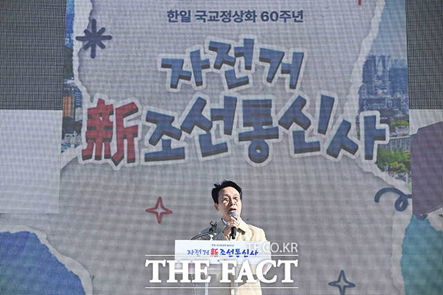 한편, '자전거 신조선통신사'는 한일 수교 60주년을 맞아 옛 조선통신사 경로를 자전거로 달리는 행사다. 지난 2001년 선로에 떨어진 일본인을 구하려다 목숨을 잃은 의인 이수현씨의 모친 신윤찬 씨가 명예 단장을 맡았다.