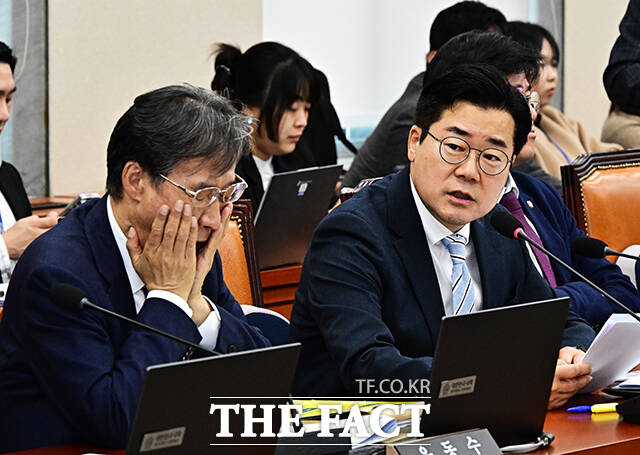 [더팩트ㅣ국회=배정한 기자] 박찬대 더불어민주당 의원이 27일 오전 서울 여의도 국회 정무위원회에서 열린 금융위원회, 금융감독원 등에 대한 종합감사에 참석해 질의를 하고 있다.