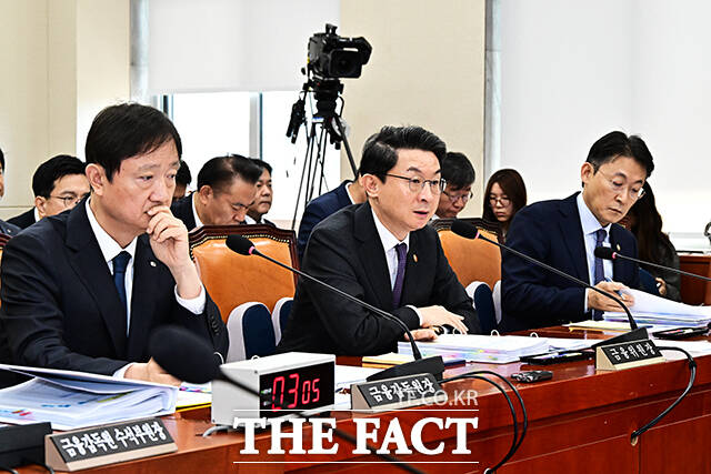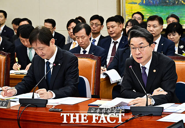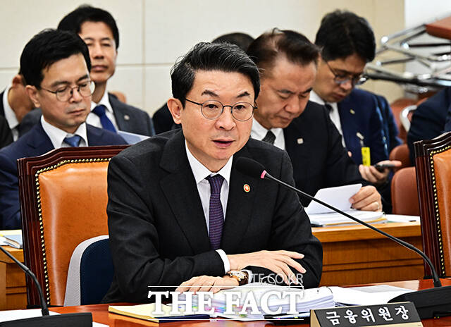 [더팩트ㅣ국회=배정한 기자] 이억원 금융위원장이 27일 오전 서울 여의도 국회 정무위원회에서 열린 금융위원회, 금융감독원 등에 대한 종합감사에 출석해 질의에 답변을 하고 있다.