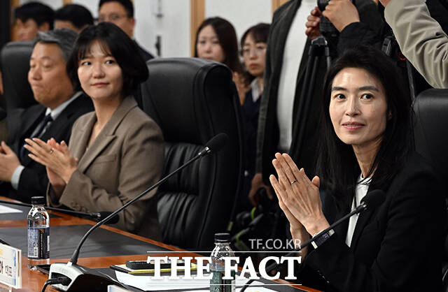 [더팩트ㅣ임영무 기자] 정신아 카카오 대표이사(오른쪽)와 최수연 네이버 대표이사 사장이 27일 오후 서울 종로구 정부서울청사에서 열린 AI 에이전트 기반 공공서비스 혁신을 위한 업무협약에 참석해 박수를 치고 있다.darkroom@tf.co.kr사진영상기획부 photo@tf.co.kr