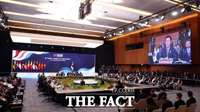[더팩트ㅣ서예원 기자] 이재명 대통령이 27일(현지시간) 말레이시아 쿠알라룸푸르 컨벤션 센터에서 열린 한-아세안(ASEAN·동남아시아국가연합) 정상회의에서 발언하고 있다.