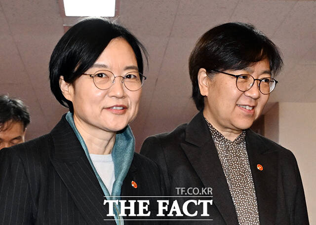 [더팩트ㅣ임영무 기자] 한성숙 중소벤처기업부 장관(왼쪽)과 정은경 보건복지부 장관이 28일 오전 서울 종로구 정부서울청사에서 열린 국무회의에 참석하고 있다.