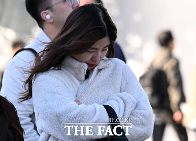 [더팩트ㅣ이새롬 기자] 전국 최저기온이 영하 4도까지 떨어지며 초겨울 날씨를 보인 28일 오전 서울 광화문 일대에서 시민들이 옷깃을 여민 채 걸음을 옮기고 있다.