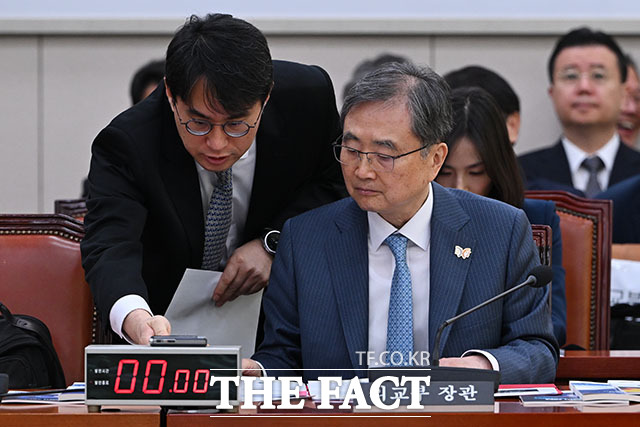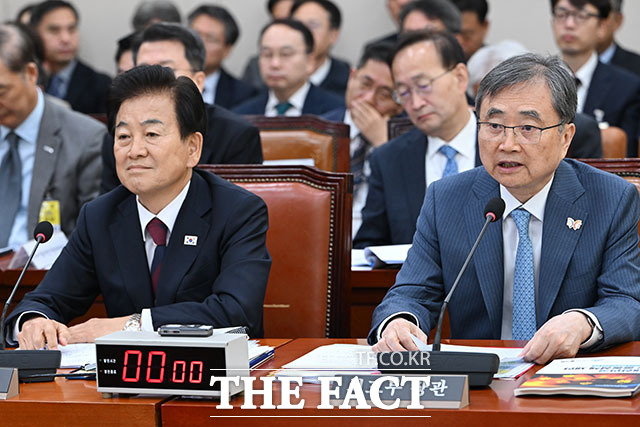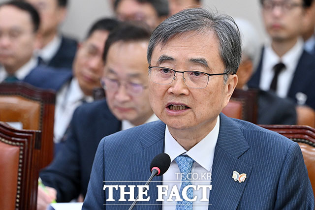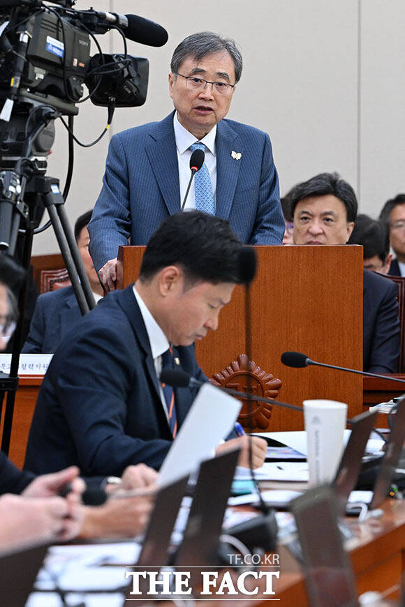 [더팩트ㅣ국회=남용희 기자] 조현 외교부 장관이 28일 오전 서울 여의도 국회에서 열린 국회 외교통일위원회의 외교부 등에 대한 종합감사에서 긴급현안보고를 하고 있다.