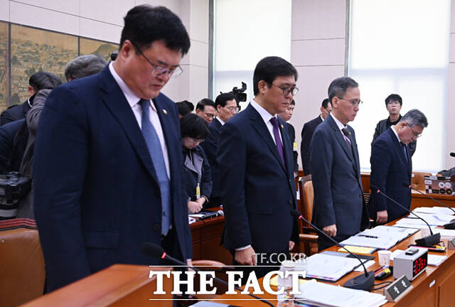 [더팩트ㅣ국회=이새롬 기자] 10.29 이태원참사 3주기를 맞은 29일 서울 여의도 국회에서 열린 문화체육관광위원회의 문화체육관광부, 국가유산청 등 종합감사에서 김교흥 위원장을 비롯한 소속 위원들과 최휘영 문화체육관광부 장관 등 증인들이 묵념을 하고 있다.