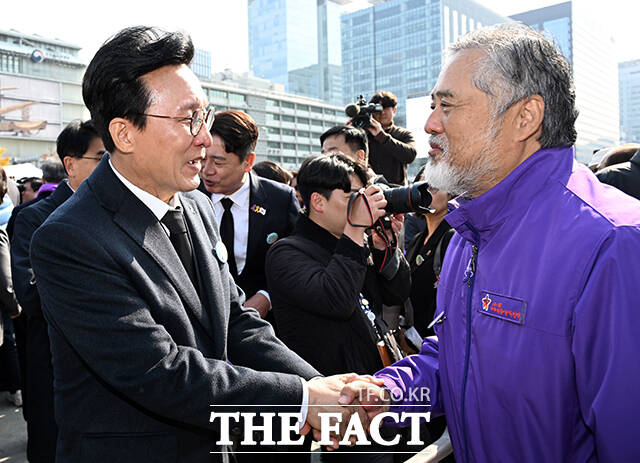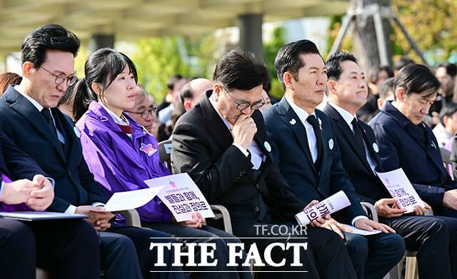[더팩트ㅣ임영무 기자] 우원식 국회의장이 29일 오전 서울 종로구 광화문 북광장에서 열린 이태원 참사 3주기 기억식에 참석해 추모사를 하고 있다.