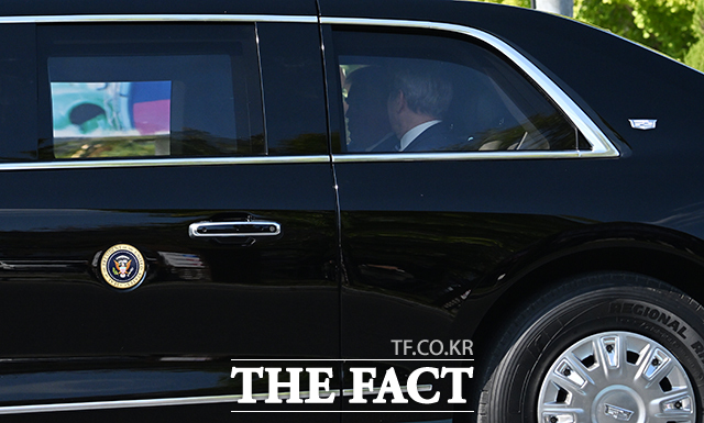 [더팩트|경주=박헌우 기자] 2025 아시아태평양경제협력체(APEC) 참석을 위해 국빈 방한한 도널드 트럼프 미국 대통령이 29일 오후 경북 경주에 도착해 전용 리무진 '더비스트'를 타고 APEC 서밋 장소로 이동하고 있다.