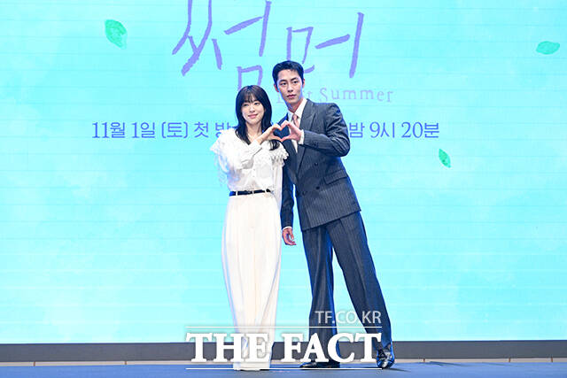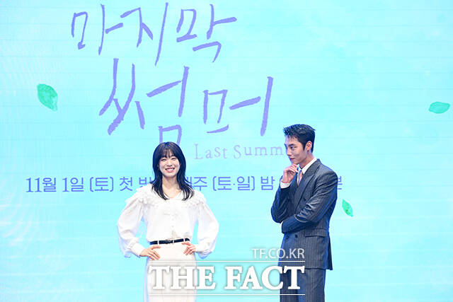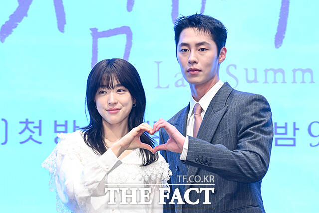 [더팩트ㅣ서예원 기자] 배우 최성은(왼쪽)과 이재욱이 29일 오후 서울 구로구 신도림 더세인트 그랜드 볼룸에서 열린 KBS2 새 토일 미니시리즈 '마지막 썸머' 제작발표회에 참석해 포즈를 취하고 있다.