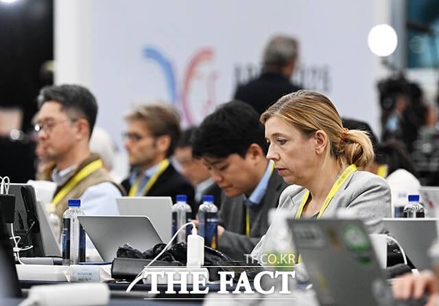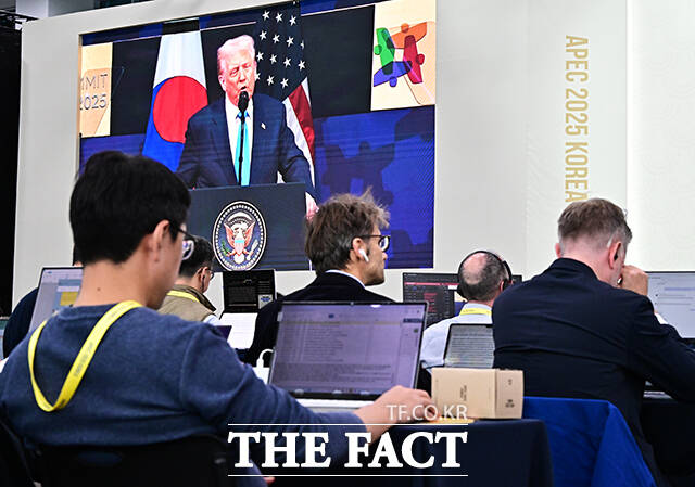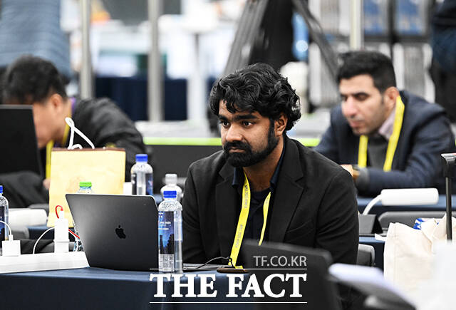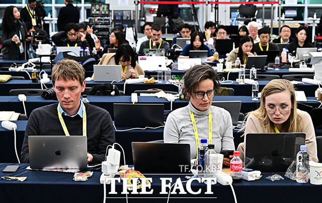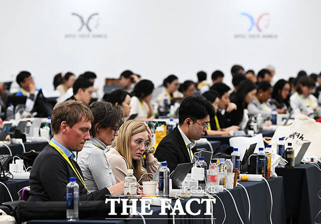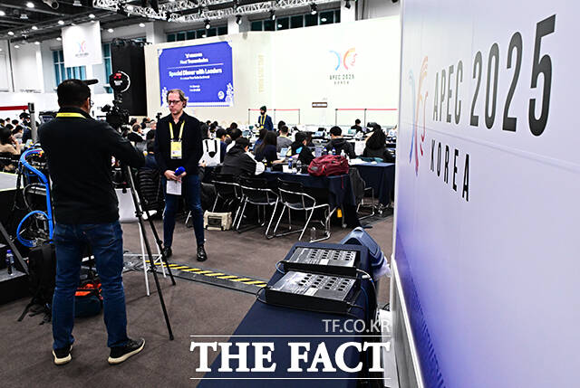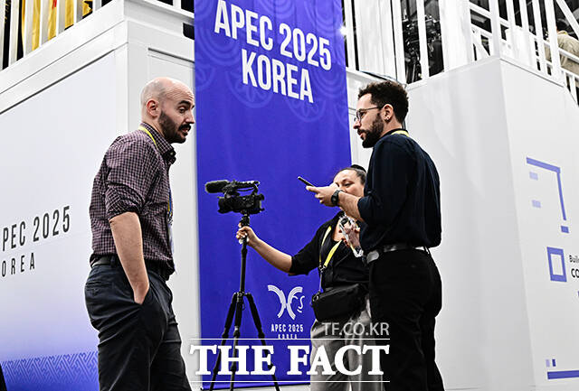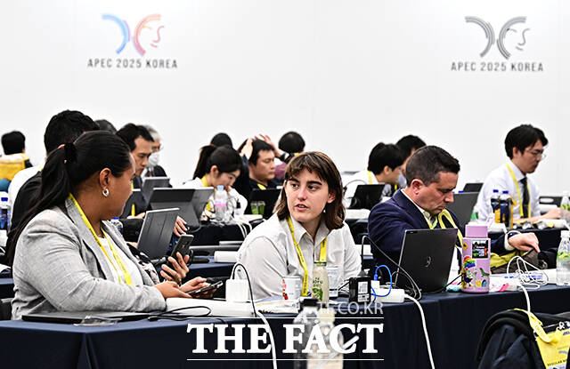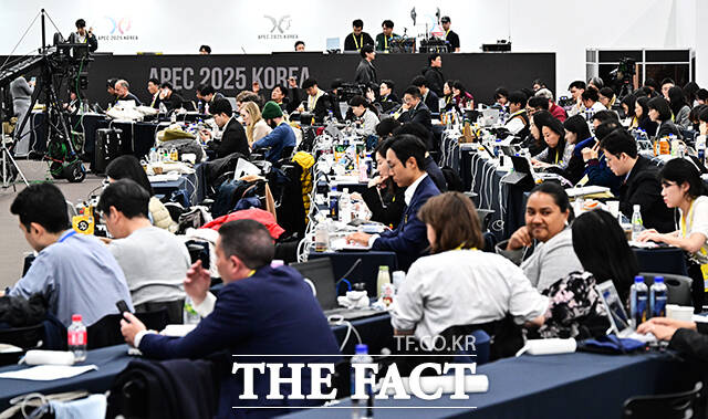 [더팩트ㅣ경주=배정한 기자] 2025 경주 아시아태평양경제협력체(APEC) 정상회의를 취재하기 위해 모인 각국의 취재진들이 29일 오후 경북 경주 보문단지 내 국제미디어센터(IMC)에서 업무를 보고 있다.