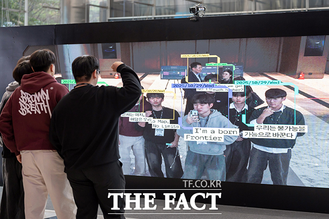[더팩트ㅣ박헌우 기자] '2025 정주영 창업경진대회' 데모데이가 29일 서울 강남구 코엑스에서 열린 가운데 '개척 메시지 갤러리' 포토존에서 참관객들이 사진을 촬영하고 있다.