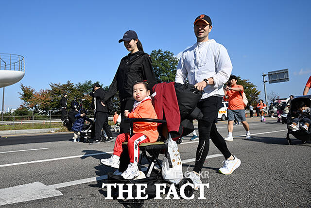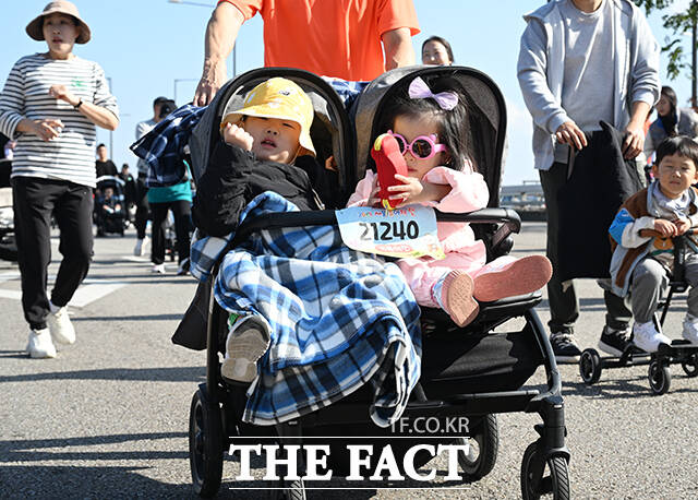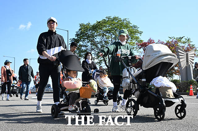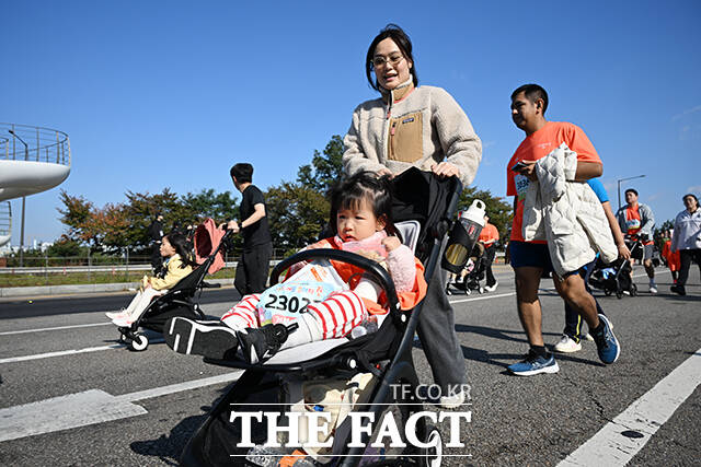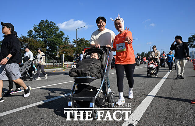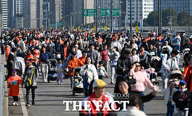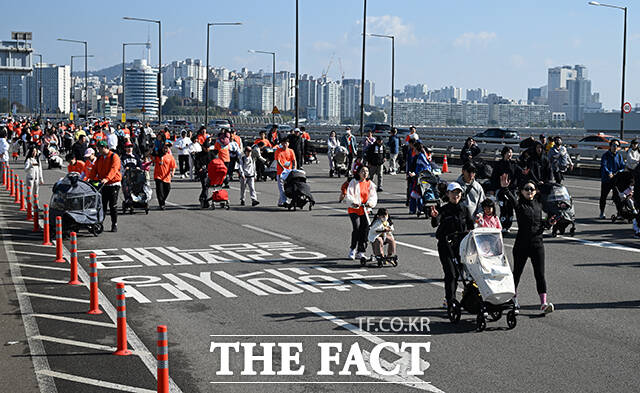 [더팩트ㅣ박헌우 기자] '2025 서울 유아차 런'이 1일 오전 서울 여의도 일대에서 열린 가운데 참가자들이 마포대교를 건너고 있다.