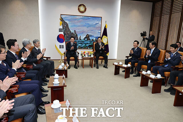 시정연설 전 우원식 국회의장과 환담하는 이재명 대통령 [TF사진관]