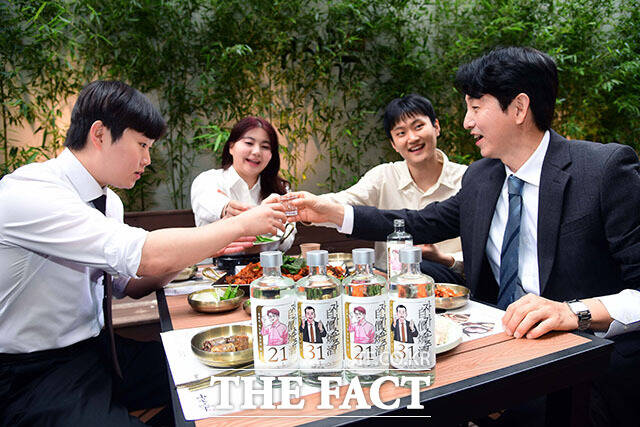 [더팩트ㅣ남용희 기자] 웹소설 '서울 자가에 대기업 다니는 김부장 이야기'를 모티브로 한 전통 안동소주 ‘자가소주’ 출시 기념행사가 5일 서울 종로구 동숭길 한 식당에서 진행된 가운데 모델들이 기념 촬영을 하고 있다.