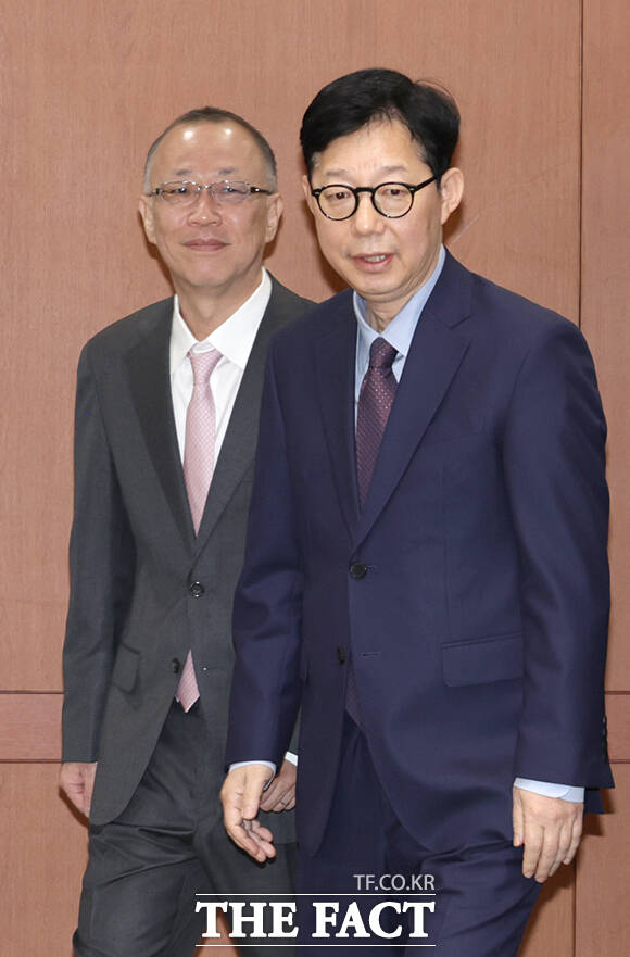 [더팩트ㅣ임영무 기자] 박윤주 외교부 1차관이 7일 오전 서울 종로구 외교부에서 열린 한일 차관전략대화에 참석해 후나코시 다케히로 일 외무성 사무차관과 악수를 하고 있다.