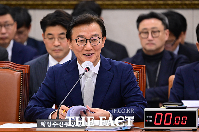 [더팩트ㅣ국회=남윤호 기자] 전재수 해양수산부 장관이 7일 오전 서울 여의도 국회에서 열린 농림축산식품해양수산위원회 전체회의에 참석해 질의 답변을 하고 있다.