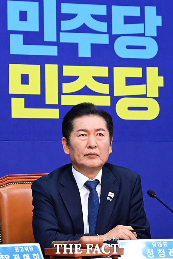 [더팩트ㅣ국회=남윤호 기자] 정청래 더불어민주당 대표가 10일 오전 서울 여의도 국회에서 열린 최고위원회의에 참석해 모두발언을 하고 있다.