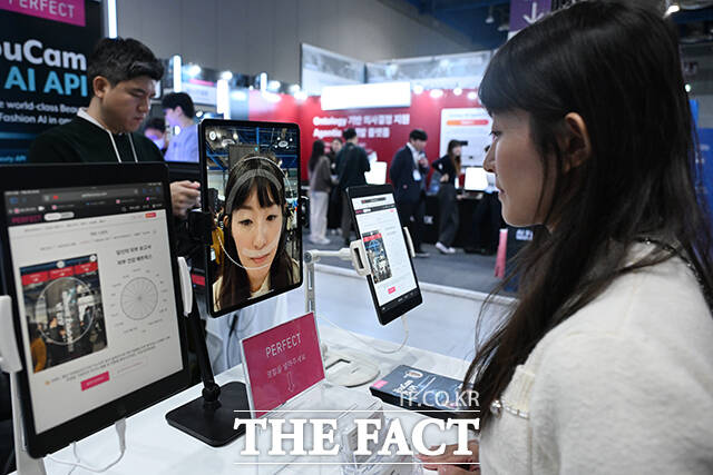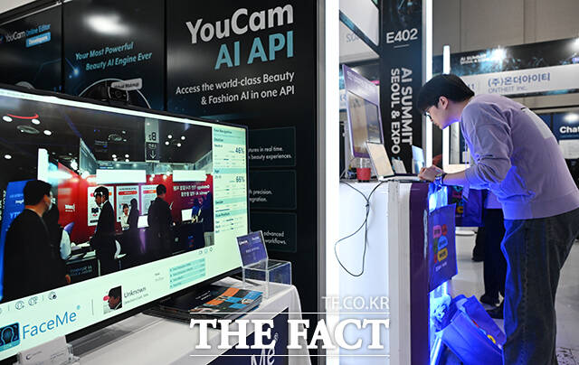 [더팩트ㅣ서예원 기자] 'AI 서밋 서울 앤 엑스포 2025(AI SUMMIT SEOUL & EXPO 2025)'가 10일 오전 서울 강남구 코엑스에서 열린 가운데 관람객들이 AI기반으로 제작된 3D 광고 영상을 시청하고 있다.