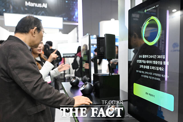 [더팩트ㅣ서예원 기자] 'AI 서밋 서울 앤 엑스포 2025(AI SUMMIT SEOUL & EXPO 2025)'가 10일 오전 서울 강남구 코엑스에서 열린 가운데 관람객이 부스를 체험하고 있다.