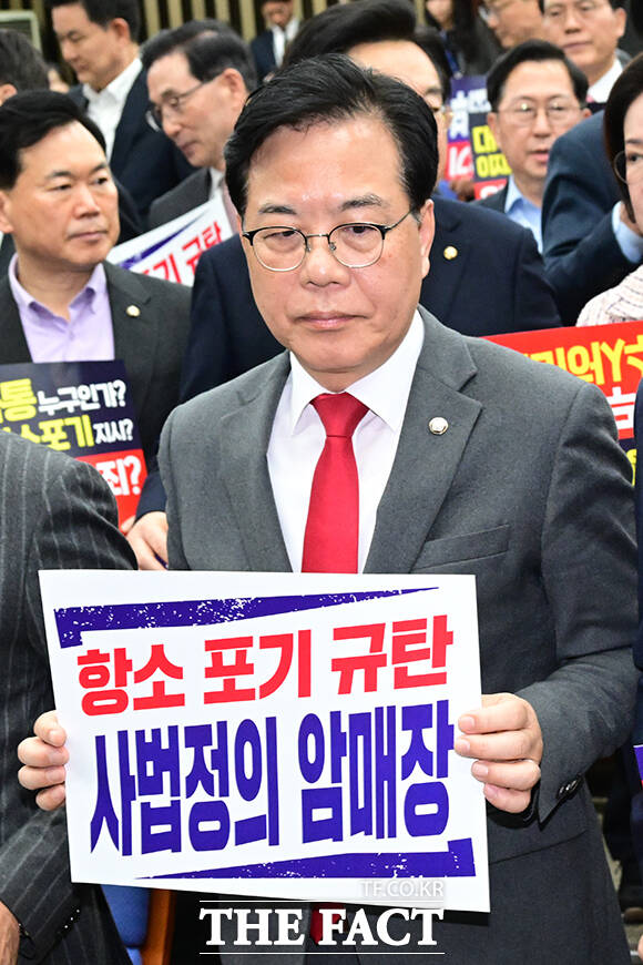 송언석 원내대표는 이날 의원총회에서 "정성호 법무부 장관의 아침 발언을 보면 검찰을 지휘하는 법무부 장관의 발언인지 아니면 대장동 범죄집단의 변호인인지 구분이 안 간다"고 했다.