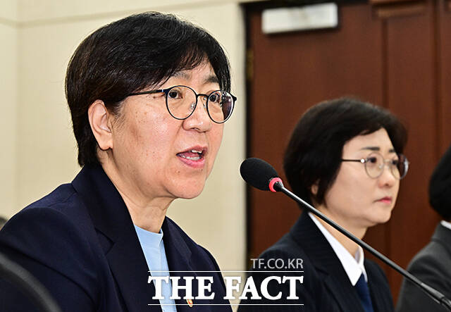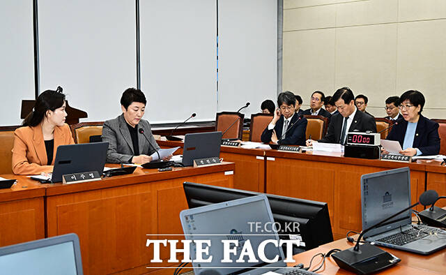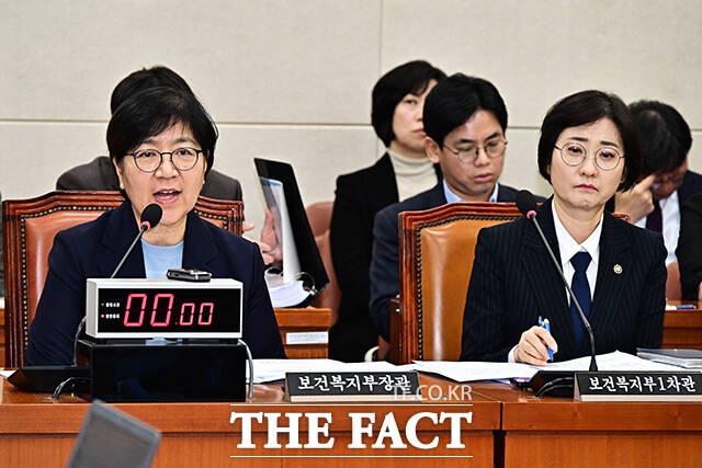 [더팩트ㅣ국회=배정한 기자] 정은경 보건복지부 장관(왼쪽)이 12일 오전 서울 여의도 국회에서 열린 보건복지위원회 전체회의에 출석해 질의에 답변을 하고 있다.
