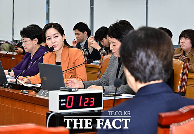 [더팩트ㅣ국회=배정한 기자] 이주영 개혁신당 의원이 12일 오전 서울 여의도 국회에서 열린 보건복지위원회 전체회의에 참석해 정은경 보건복지부 장관에게 질의를 하고 있다.