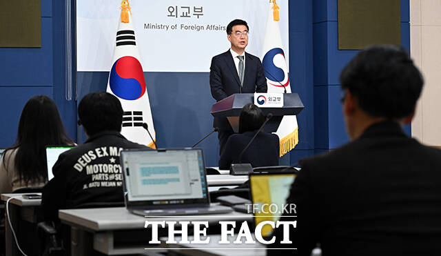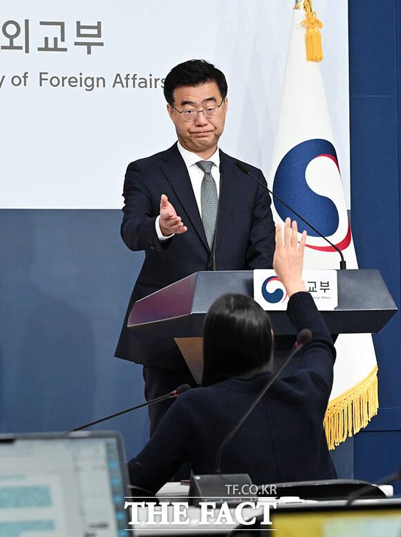 [더팩트ㅣ임영무 기자] 이재웅 외교부 대변인이 13일 오후 서울 종로구 외교부에서 현안 관련 정례브리핑을 하고 있다.